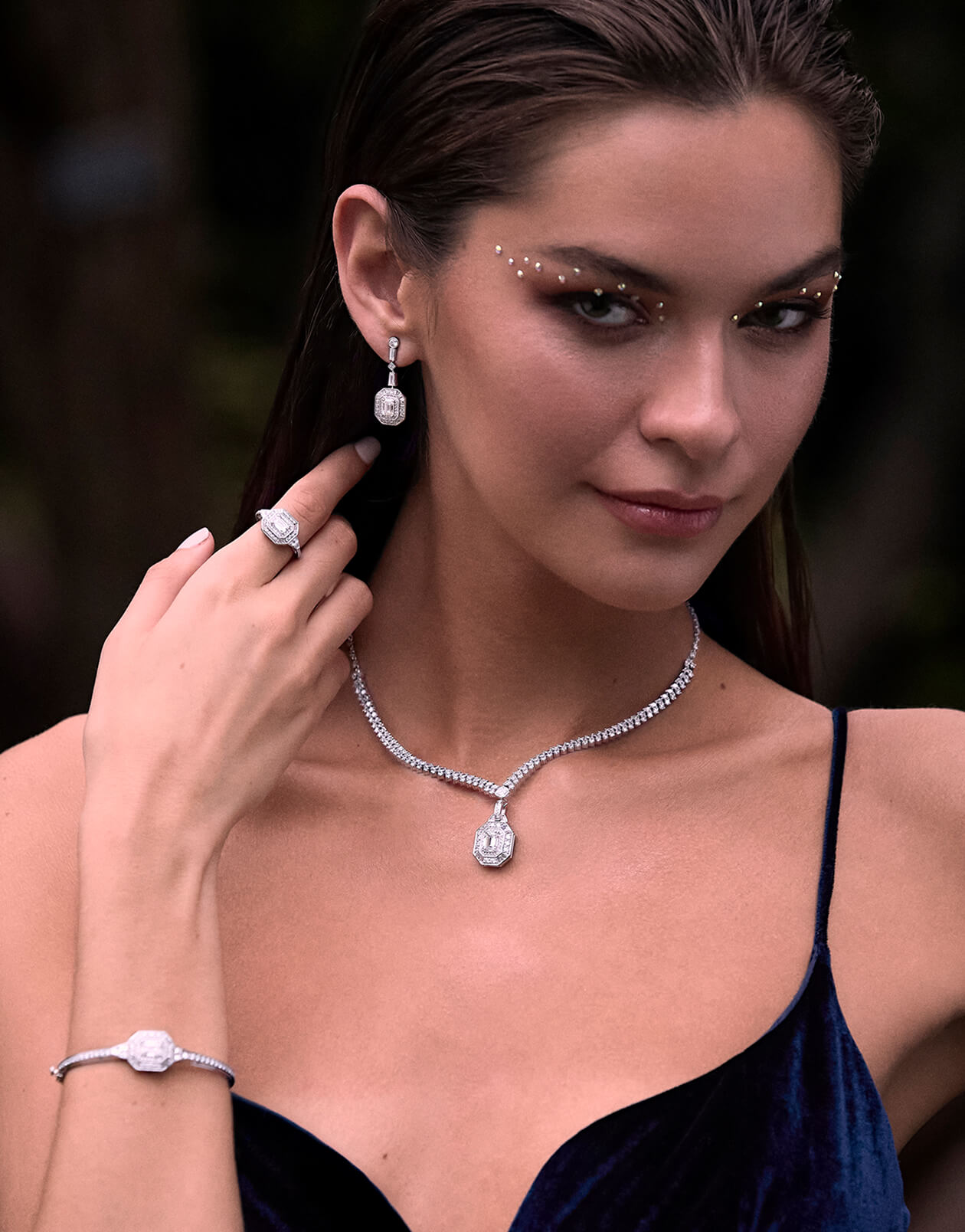 Drawing inspiration from the iconic Art Deco era, this high-jewelry suite fuses vintage charm with modern sophistication. Led by our show stopping two-tiered diamond choker with an innovative detachable pendant, the 50th Anniversary Deco Collection features a dazzling Emerald cut center stone in every piece. This celebratory collection channels a signature motif that Penny is known for, making it wearable for the extraordinary or the everyday.