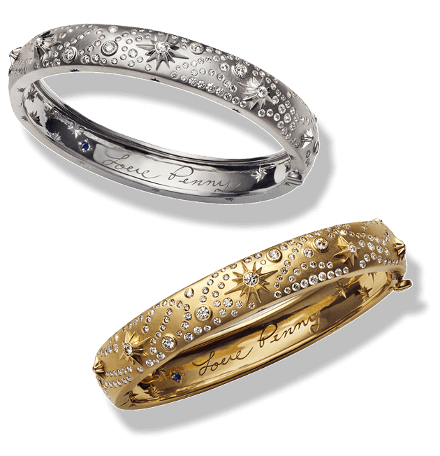 Our Limited Edition 50th Anniversary Bangle is inspired by the infinite possibilities of the cosmos and created to honor a legacy truly written in the stars. Designed in 18k gold, each bangle features a clean matte finish adorned with the sharp shine of brilliant white diamonds, to mirror the beauty of the night sky.