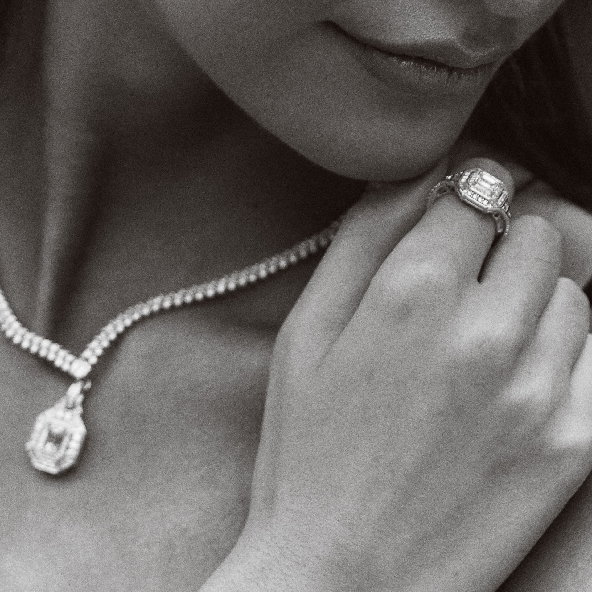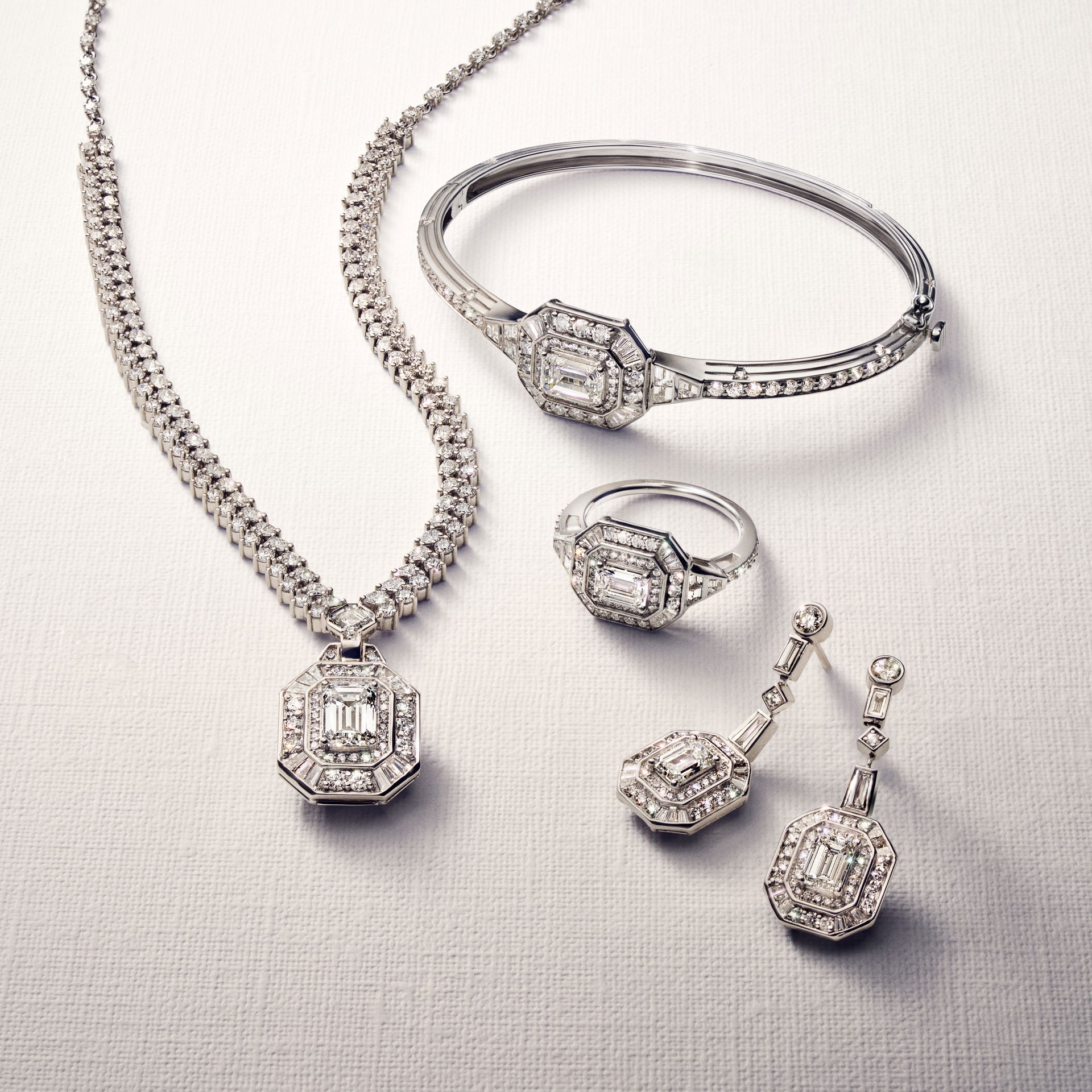 Each stone is hand-set in crisp architectural lines that celebrate symmetry and sparkle—an ode to five decades of Penny Preville’s design mastery.