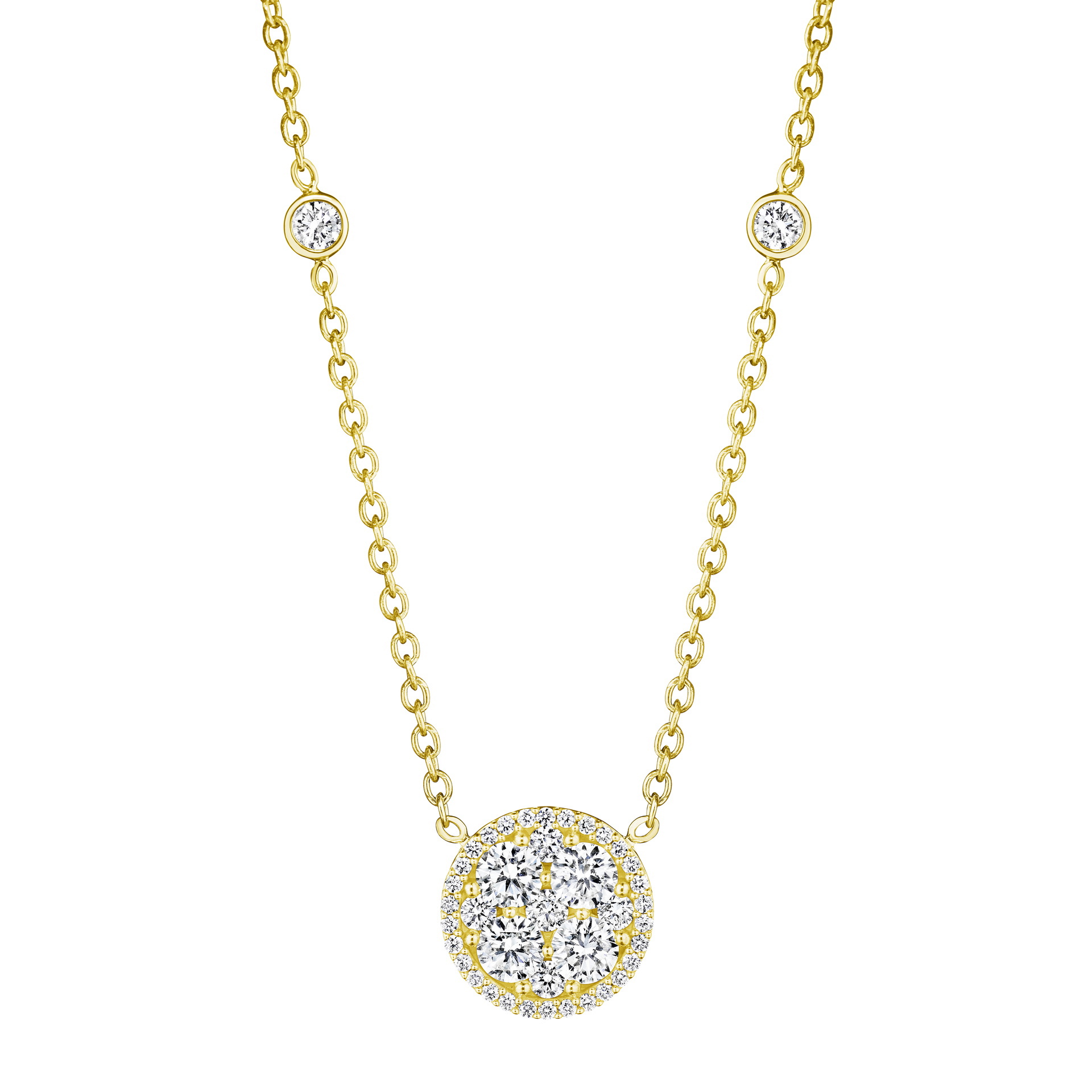 • / All Diamond Round Halo Necklace