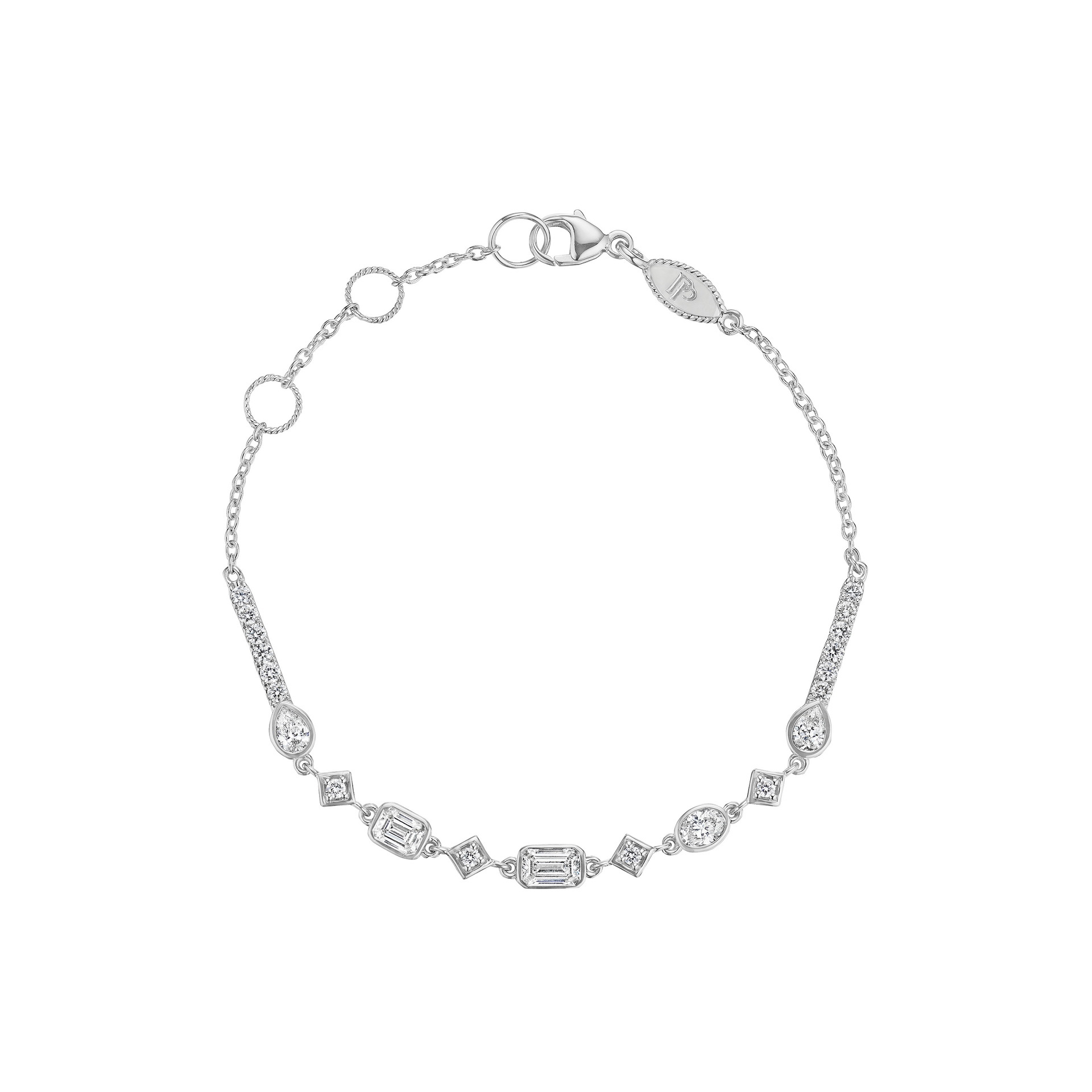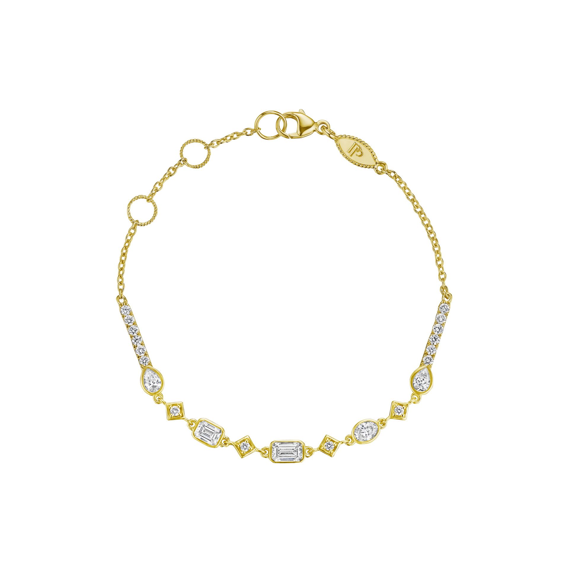 A sparkling celebration of light, this 18K gold bracelet features 1.40 ct of fancy-shape diamonds that dance across the wrist.