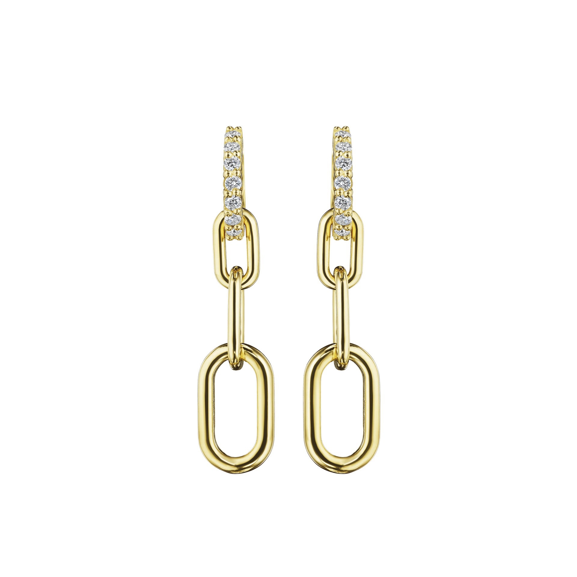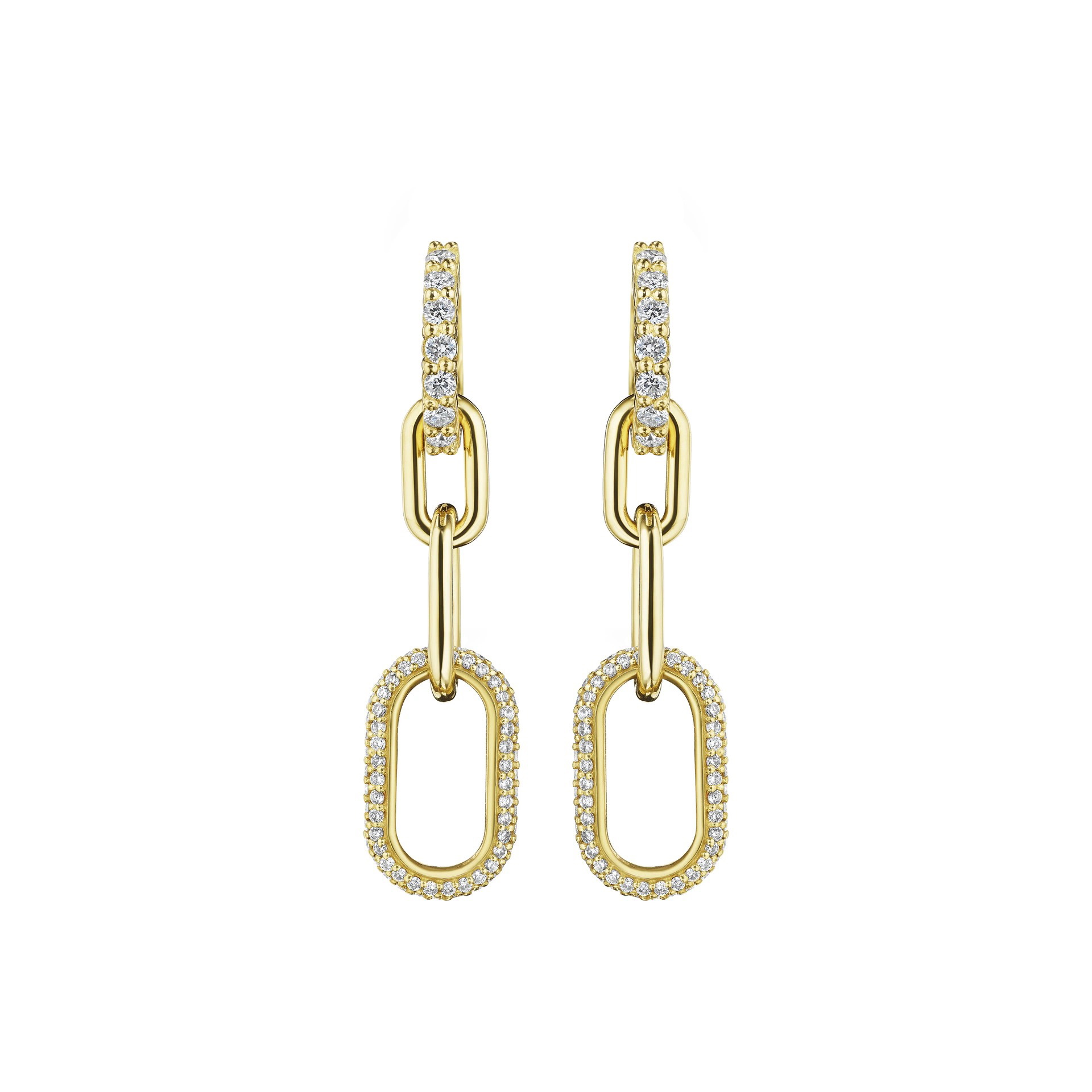These Diamond Gold Link Earrings take the classic gold link earring design to the next level. These 18K interlocking gold link earrings feature a total 1.64 carats of round brilliant diamonds in the top and bottom links that provide a brilliant face framing luster. They are as stunning as they are versatile, so you can wear them with your favorite sweater or a little black dress.