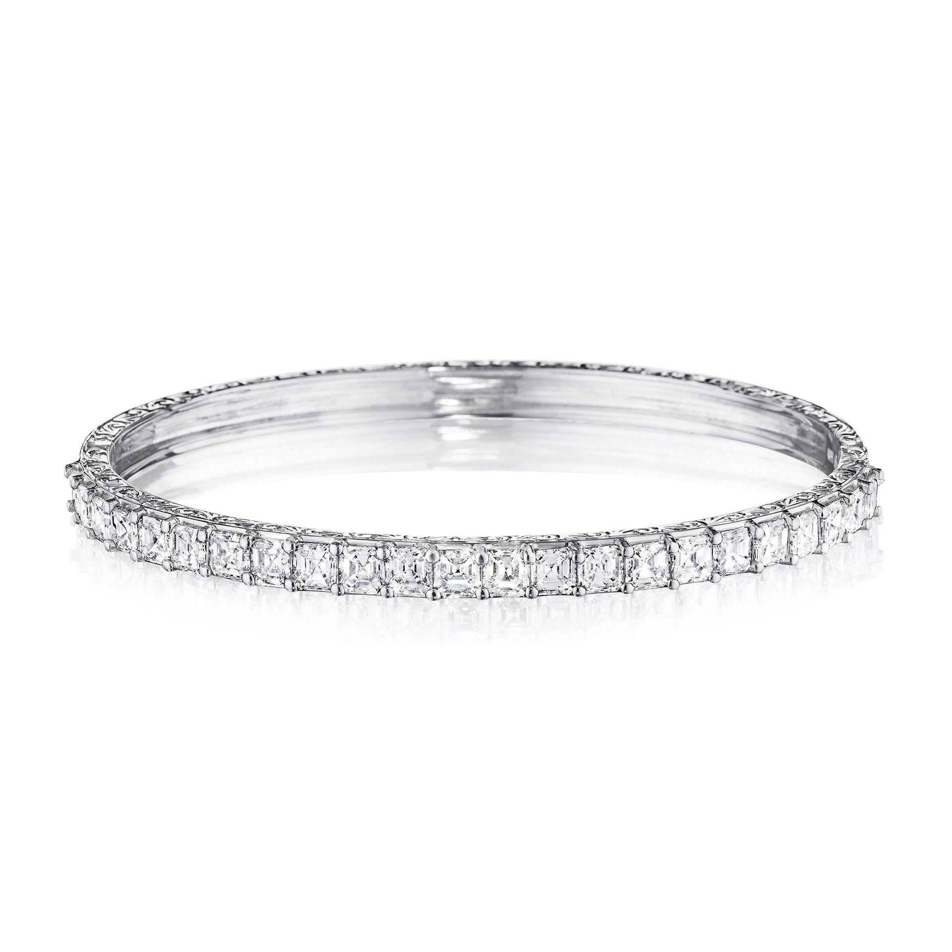 The Thin Bangle Bracelet makes all your wrist stacking dreams come true. Crafted in 18K gold and .68 carats of round brilliant diamonds, this bracelet is dainty but daringly beautiful. Layer with other gold bangle bracelets or let it shine on it's own.