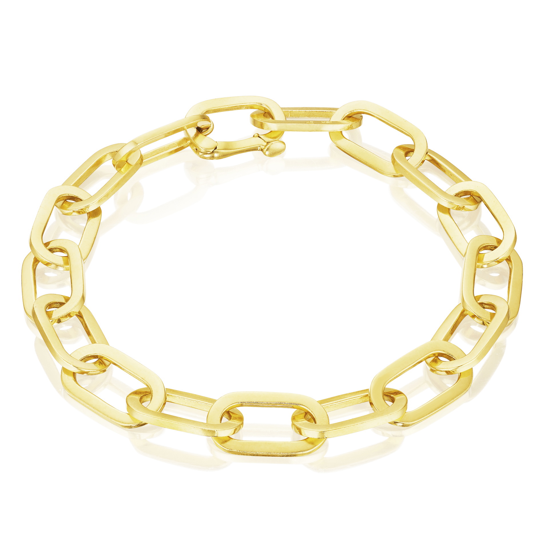 The elongated links of the Flat Link Bracelet add elegance to a simple design. Wear this 18K gold bracelet alone as a statement piece or stack it for a larger impact. No matter how you style it, this link bracelet will be a favorite for years to come.
