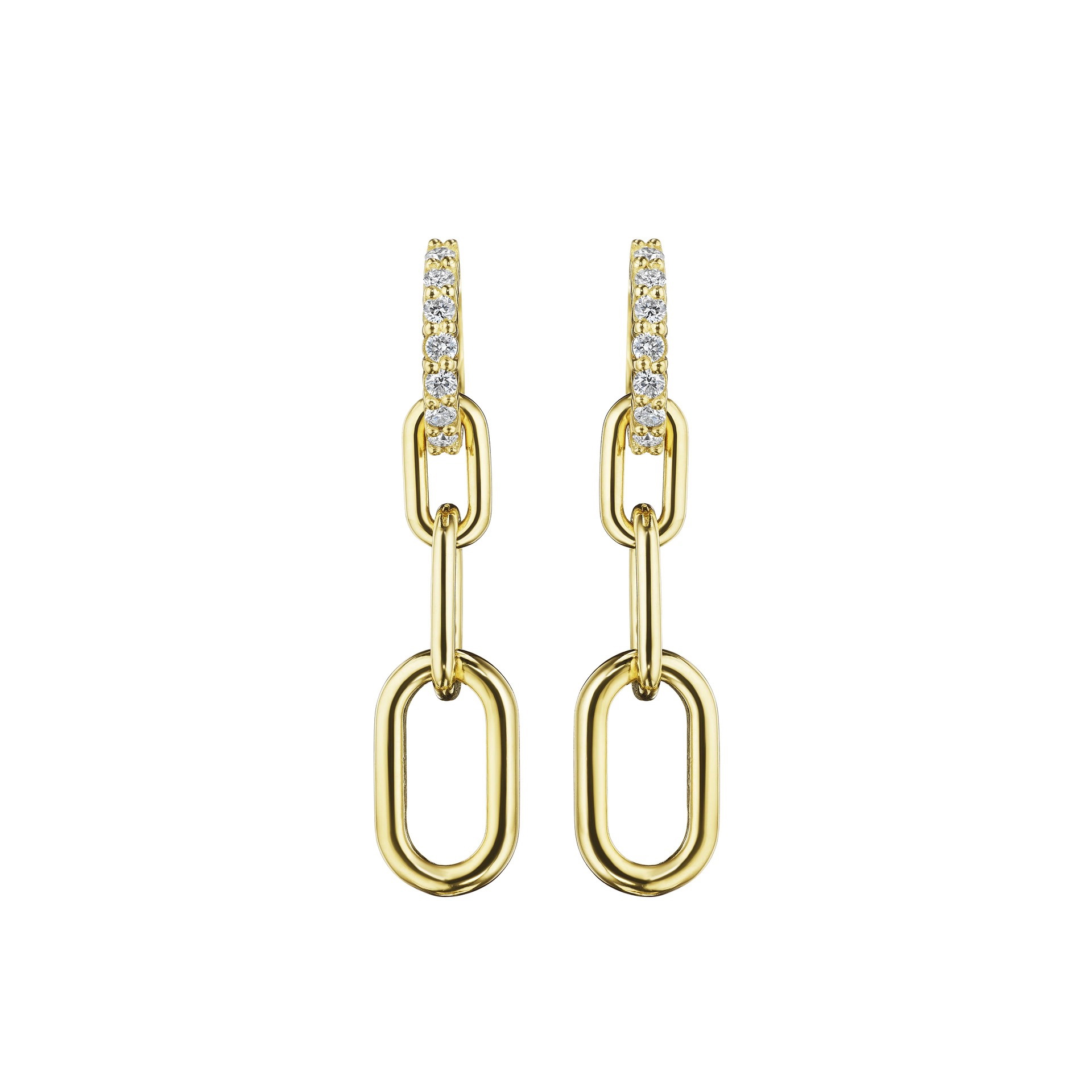 The Gold Link Earrings take the classic gold link earring design to the next level. These 18K interlocking gold link earrings feature a total 0.56 carats of round brilliant diamonds that provide a brilliant face framing luster. They are as stunning as they are versatile, so you can wear them with your favorite sweater or a little black dress.