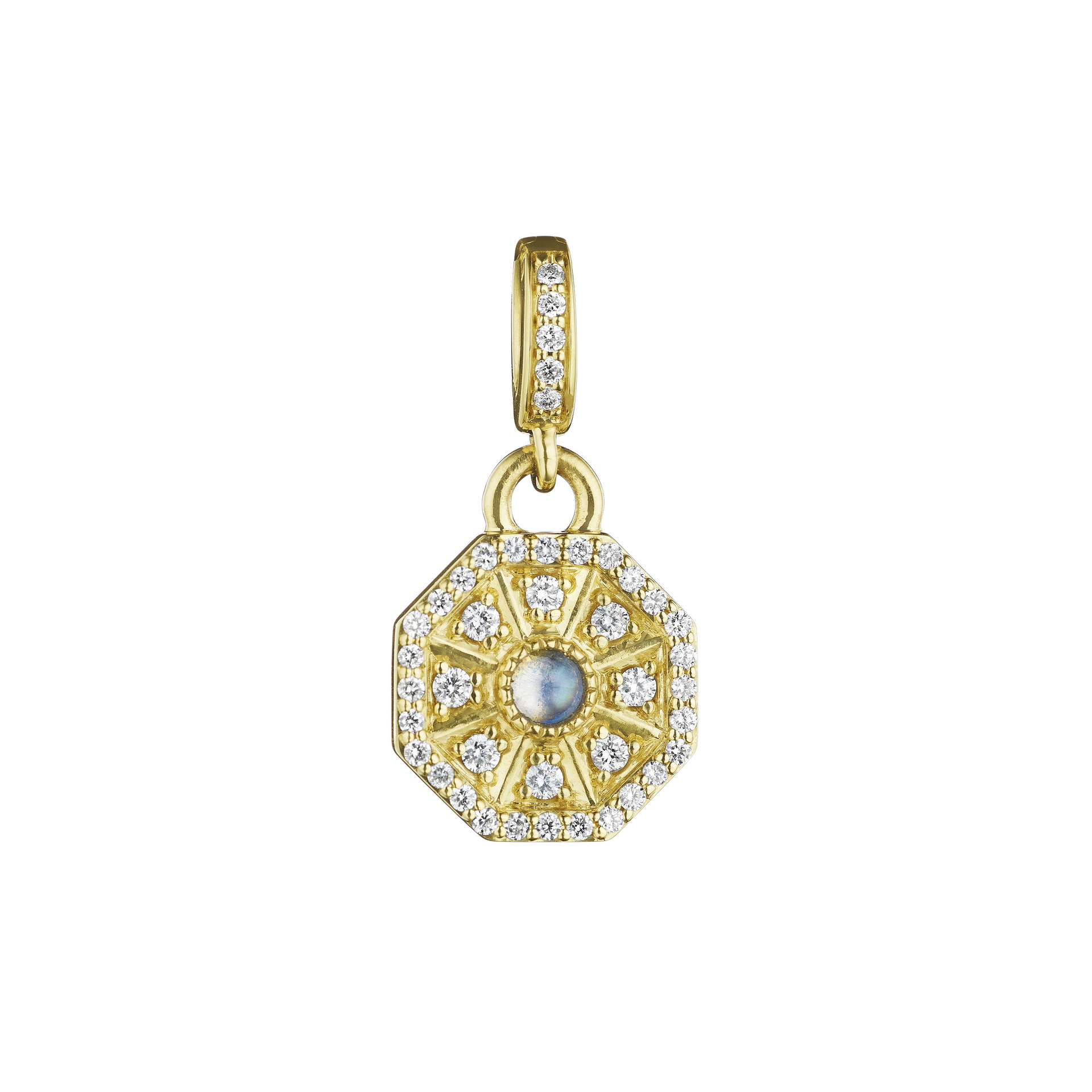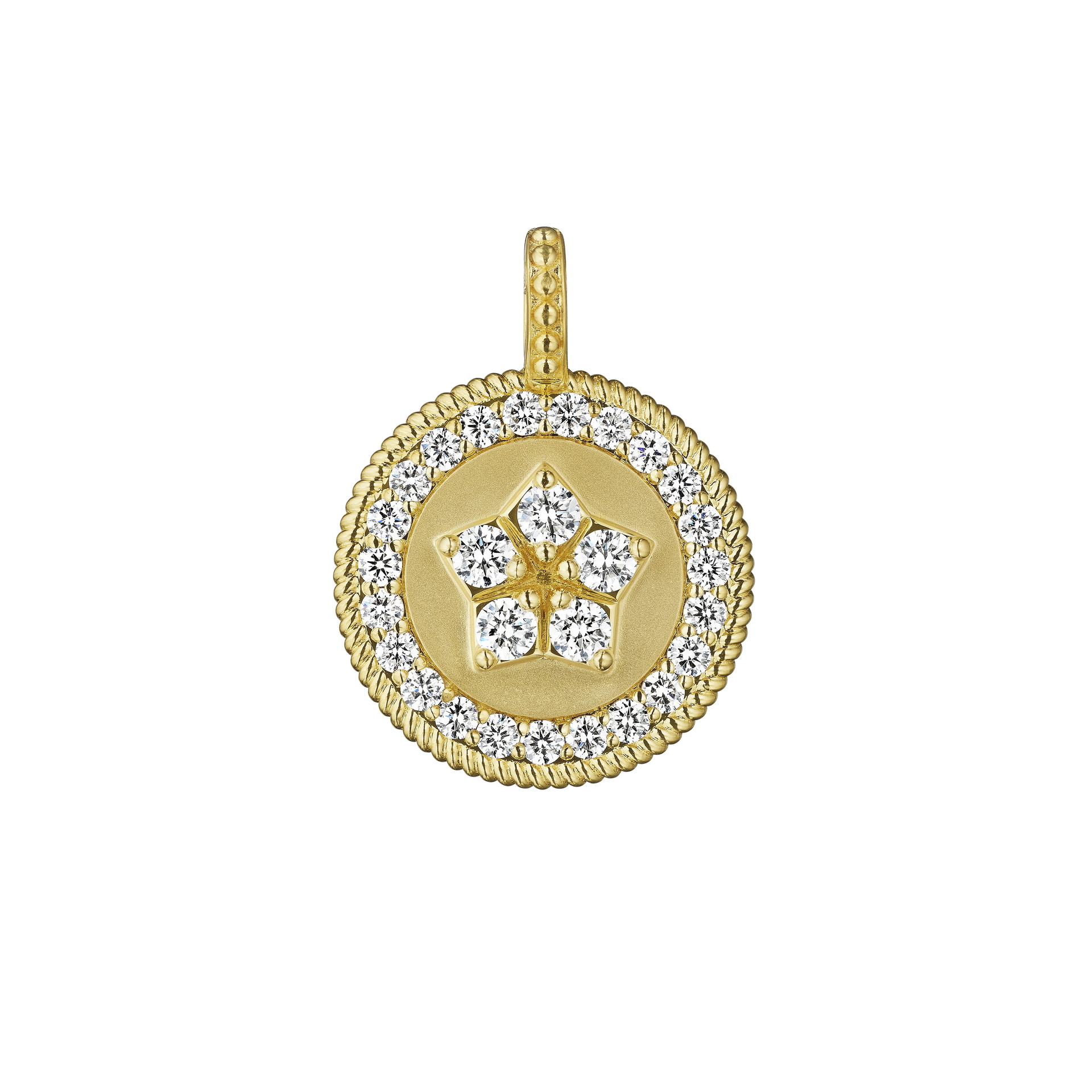Radiating light from every angle, this 20 mm medallion features 1.25 ct of hand-set diamonds forming a brilliant halo around a celestial star motif.