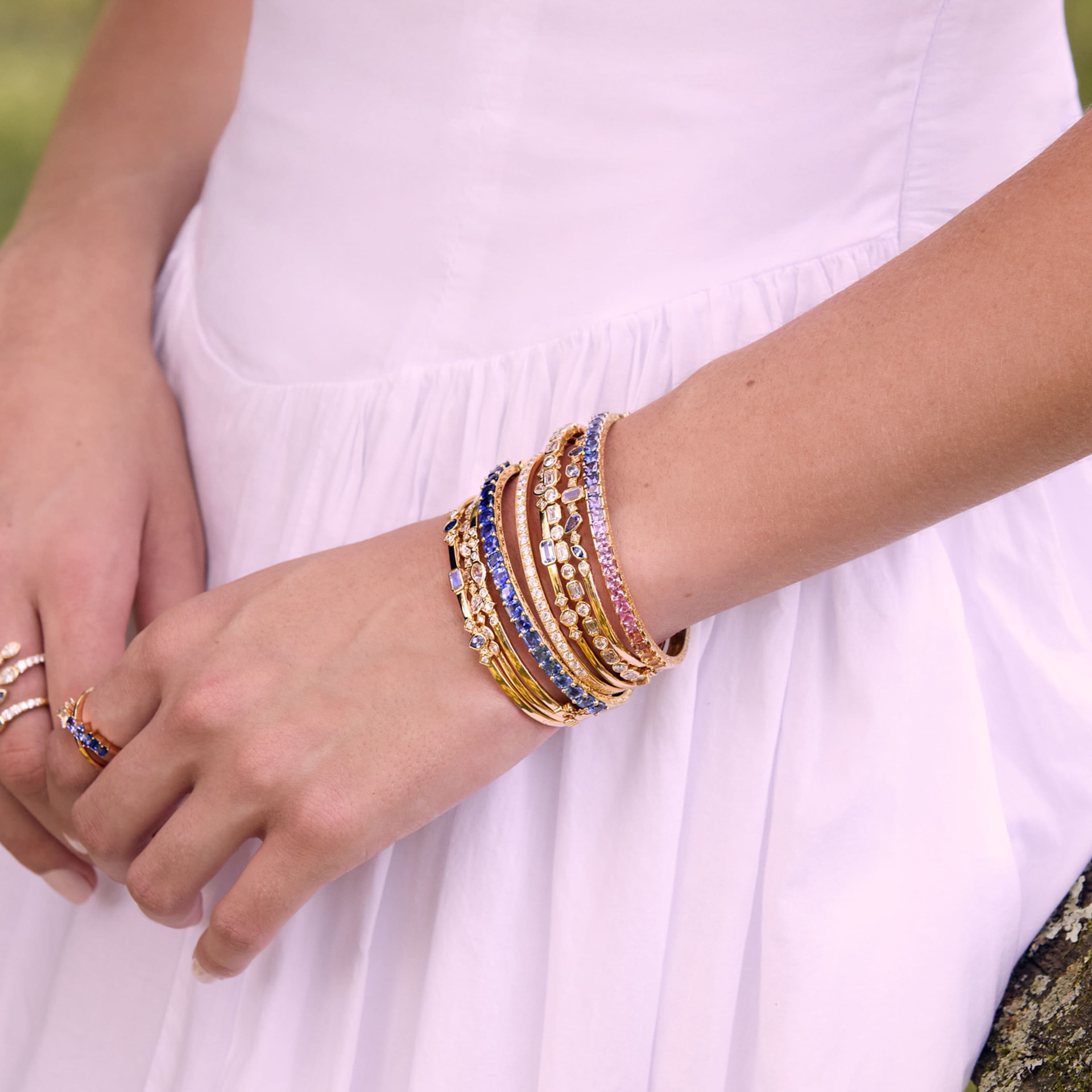 This slender 18K gold bangle channels the quiet glow of intuition, accented with .12 ct of diamonds and .20 ct of luminous moonstone.