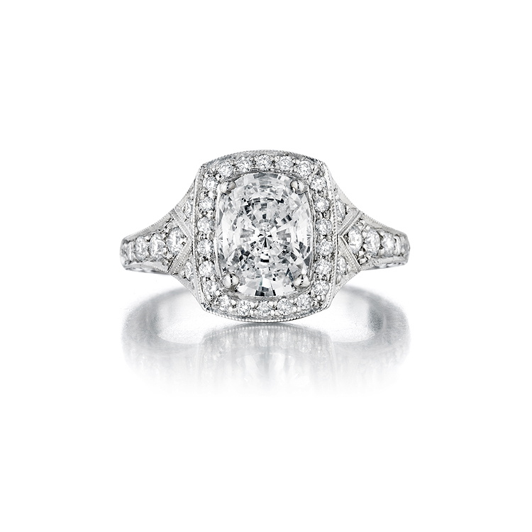 Holds a Cushion-Cut Diamond Center Stone