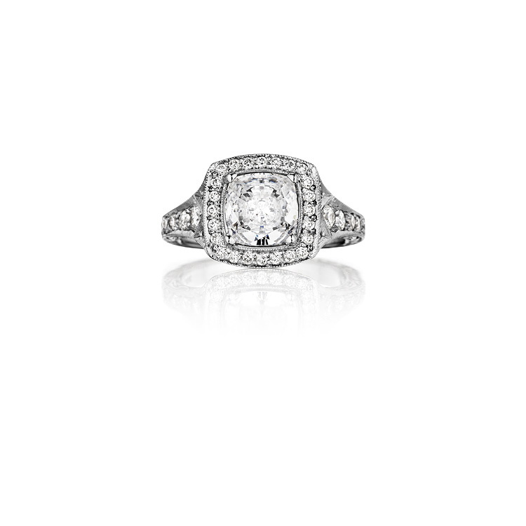 Holds a Cushion-Cut or Round Brilliant Cut Diamond Center Stone
