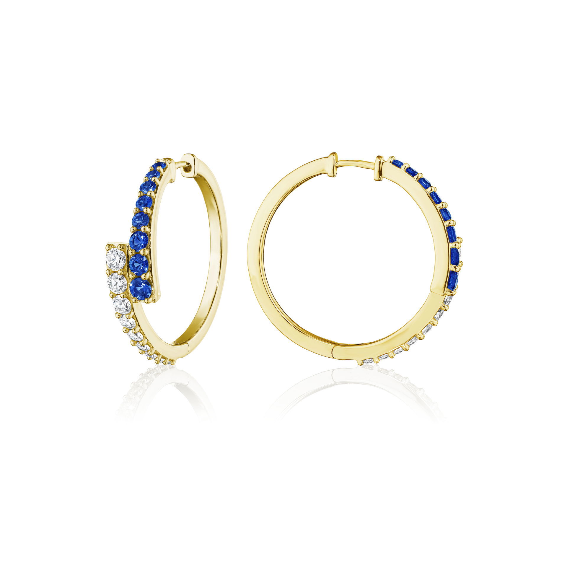 Large Blue Sapphire Embrace Hoop Earrings