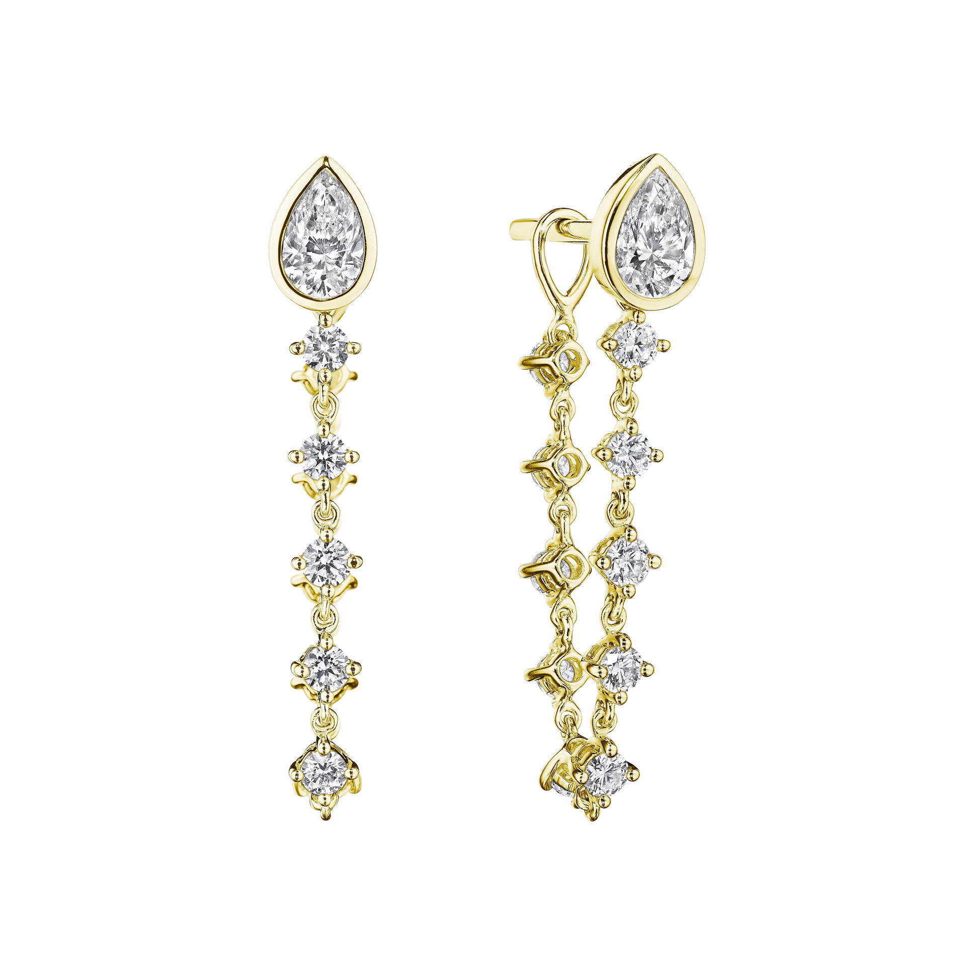 • / Pear Stud Chain Hoop Linear Earrings