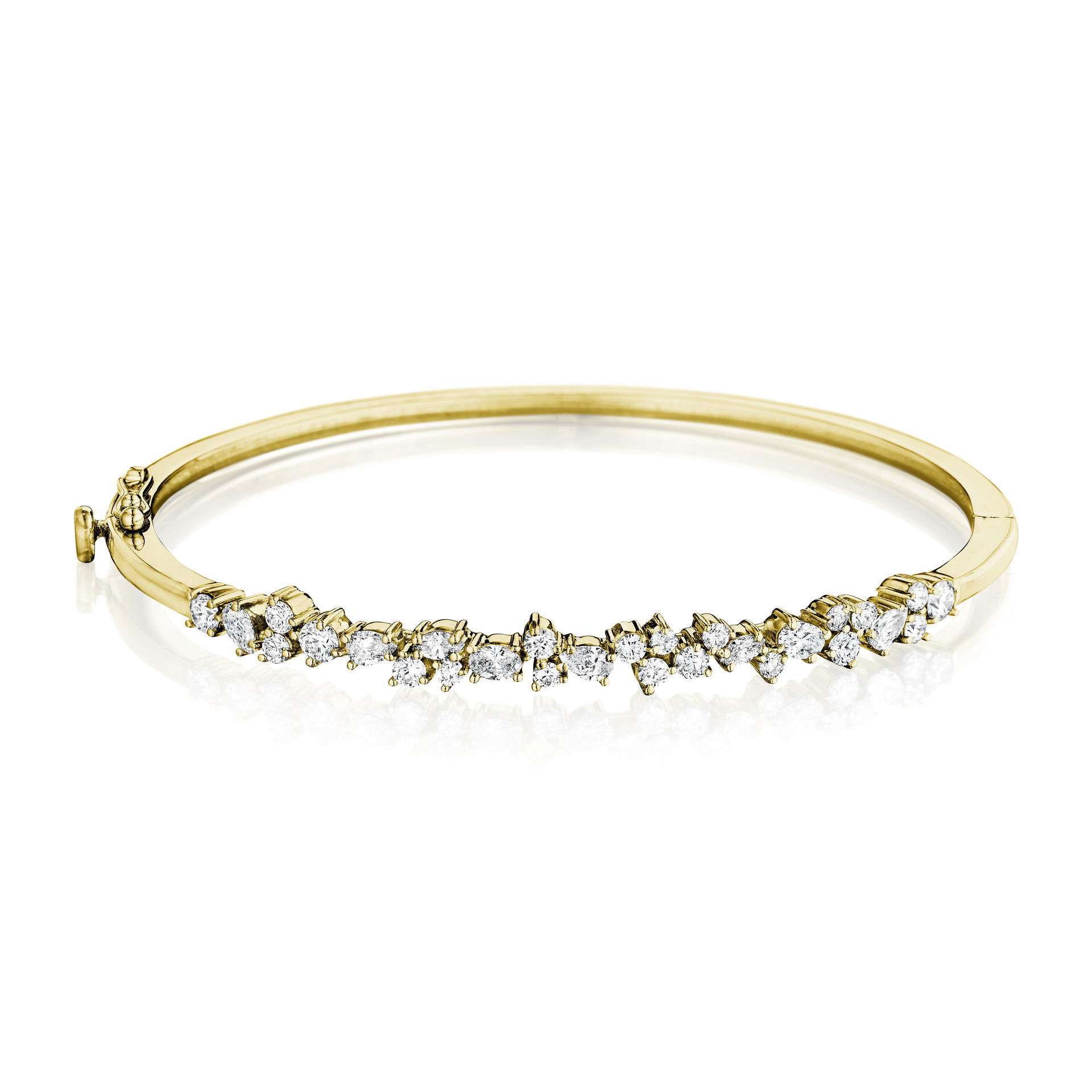 The Stardust Bangle Bracelet brings the beauty of falling stars alive in a beautiful and delicate design. A variety of marquise, oval, pear and round brilliant diamonds make up a scintillating 1.63 carats that will add the perfect amount of sparkle to your wrist.