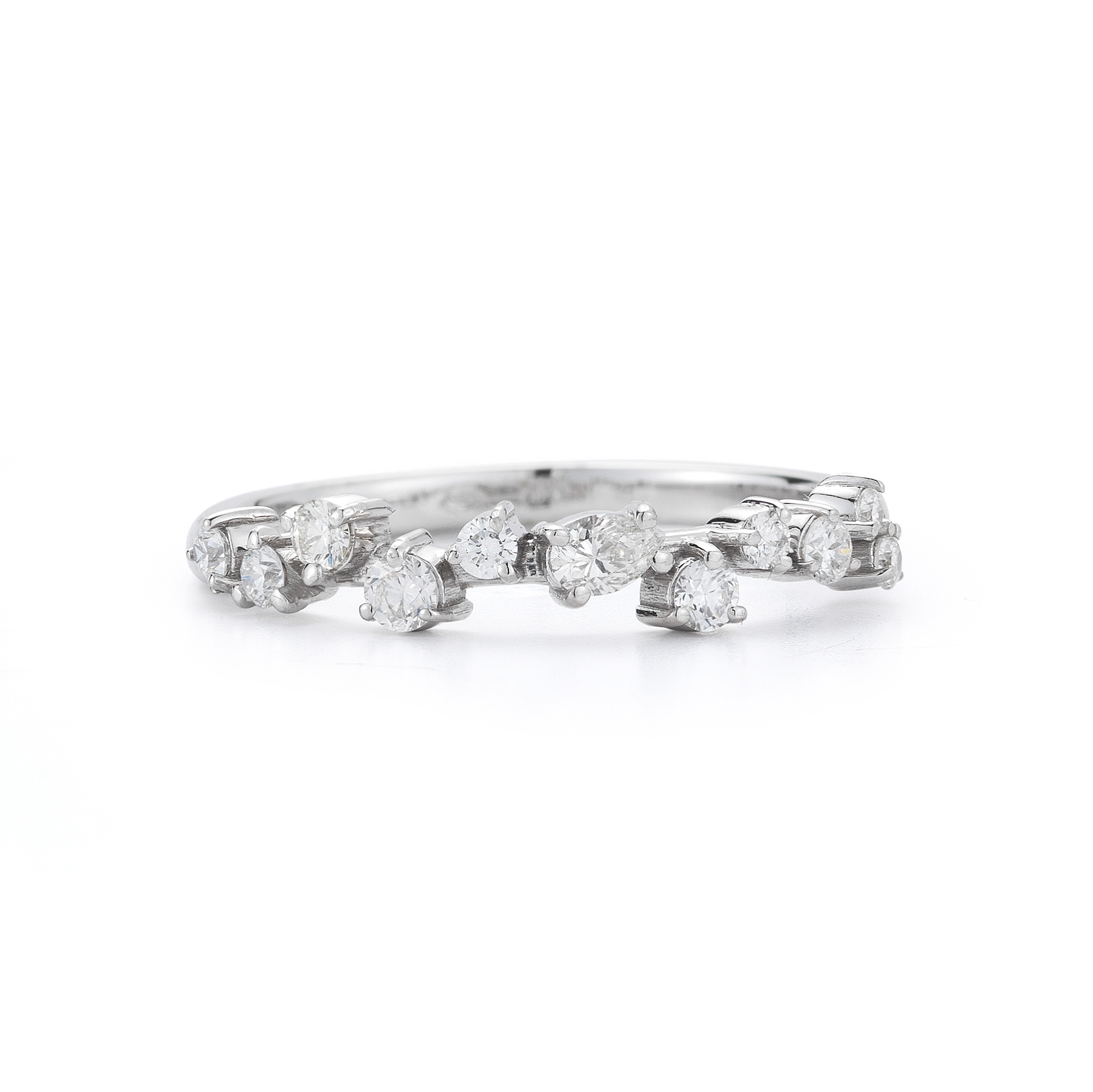 The beautifully unique Stardust Ring glitters like falling starts in the night sky, crafted in 18K gold featuring .38 carats of pear and round brilliant cut diamonds.