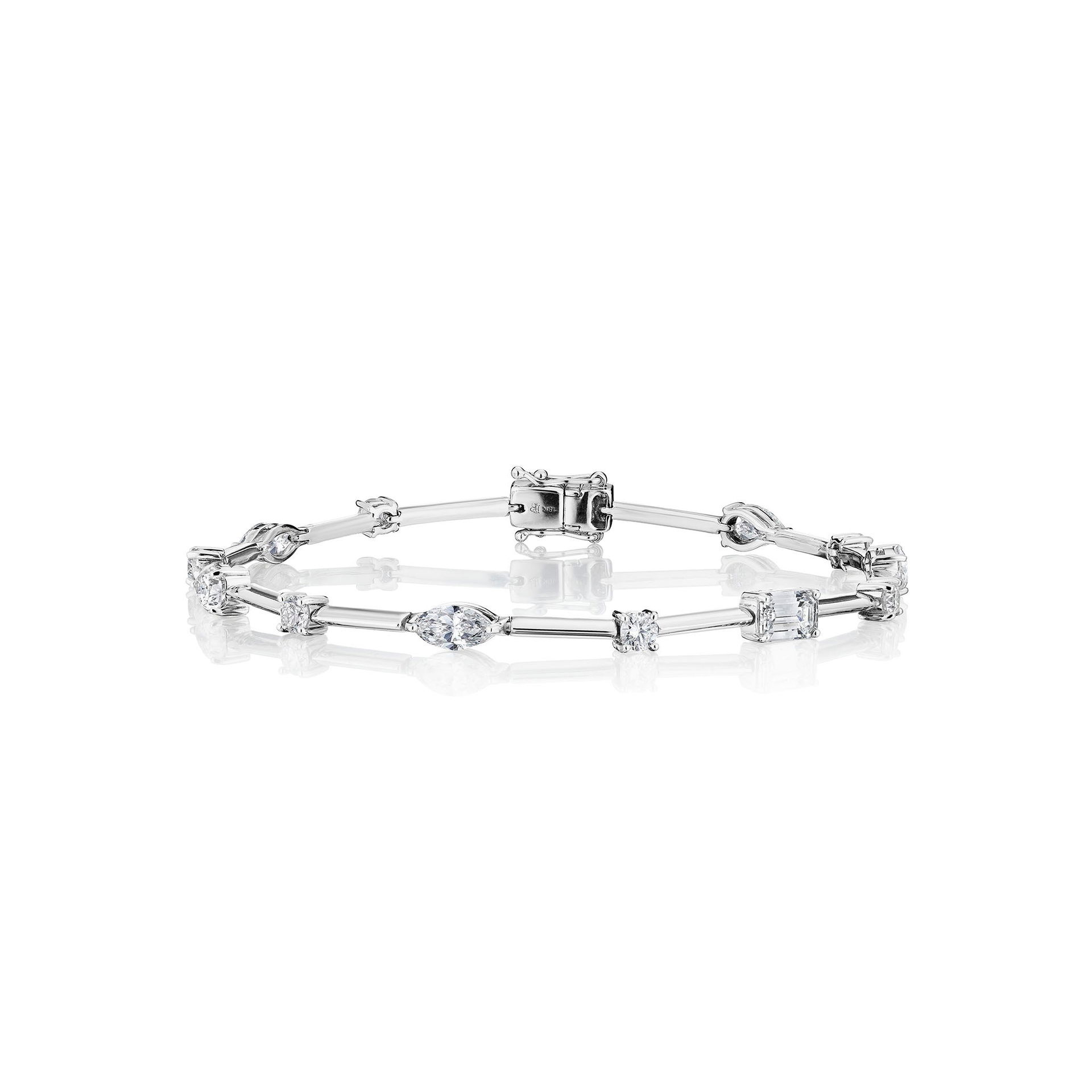 Symbolizing the journey of the moon traveling through the night. Diamonds, sapphires, and emeralds delicately connect to one another in a path - a personal journey through the heavens.