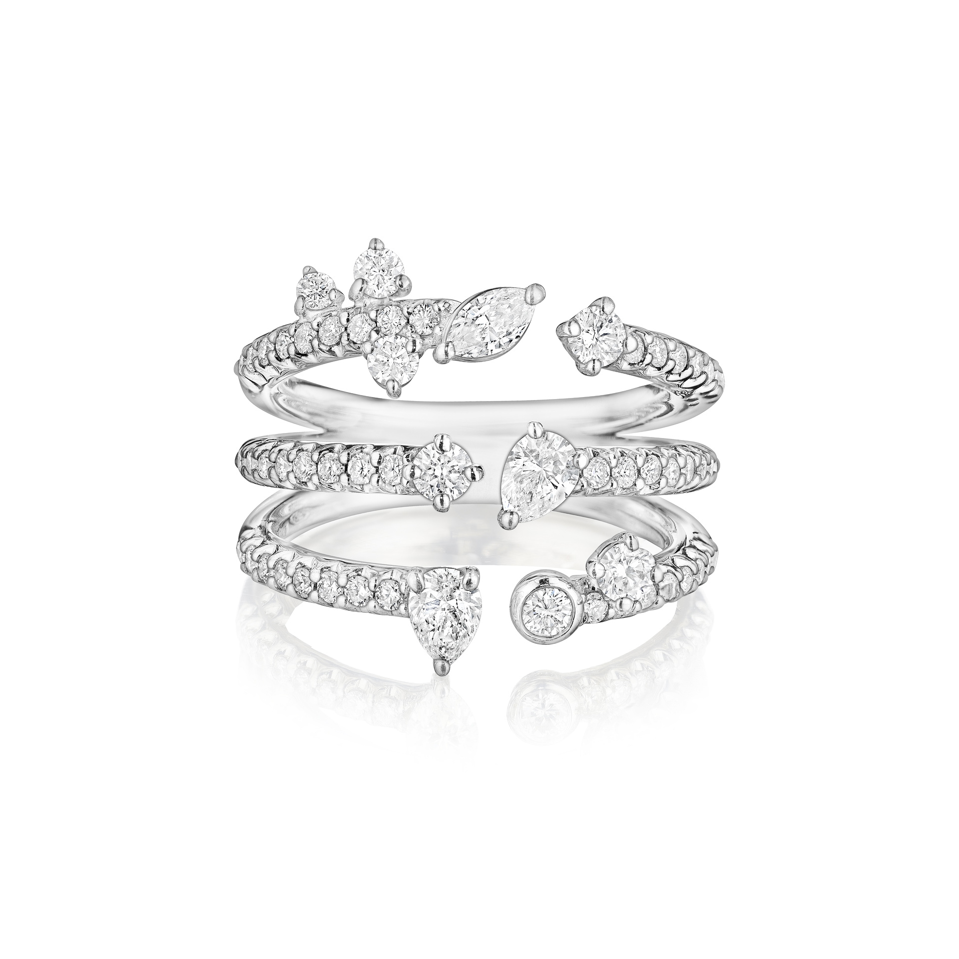 These jewels represent the sparkling night sky. Each piece is comprised of round, pear, and marquise-cut diamonds, twinkling in unison as they catch and reflect light like mystifying stardust.