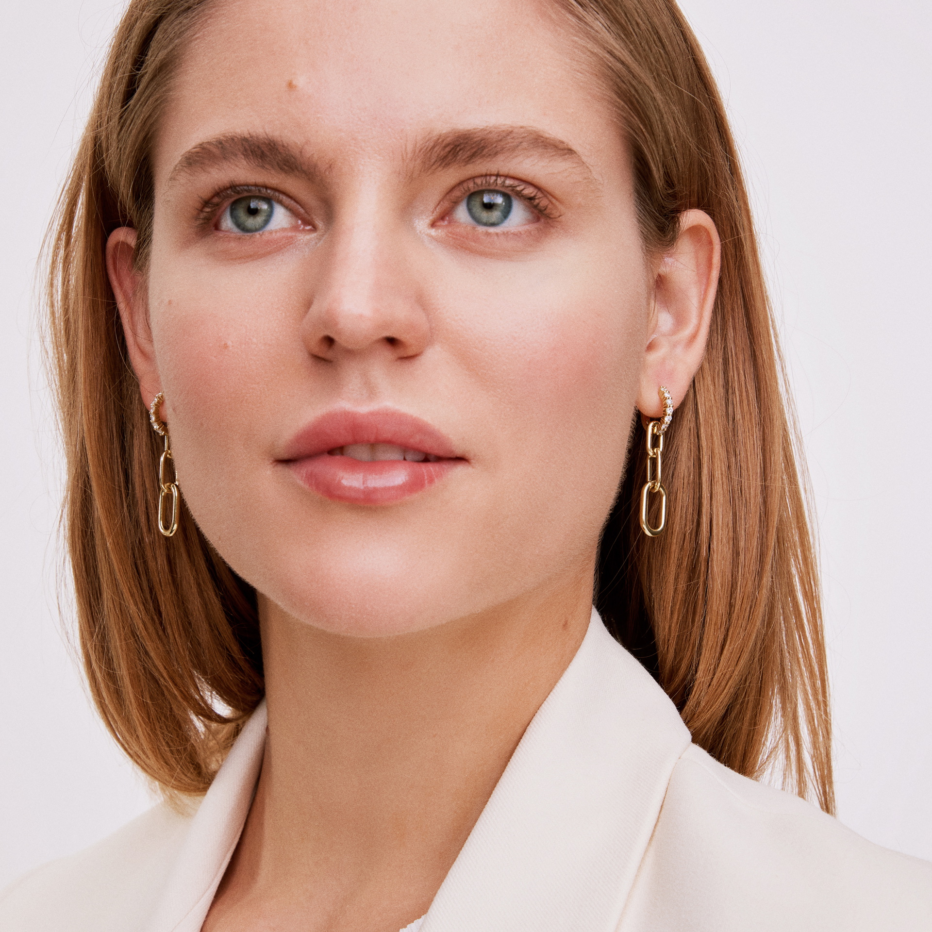 The Gold Link Earrings take the classic gold link earring design to the next level. These 18K interlocking gold link earrings feature a total 0.56 carats of round brilliant diamonds that provide a brilliant face framing luster. They are as stunning as they are versatile, so you can wear them with your favorite sweater or a little black dress.